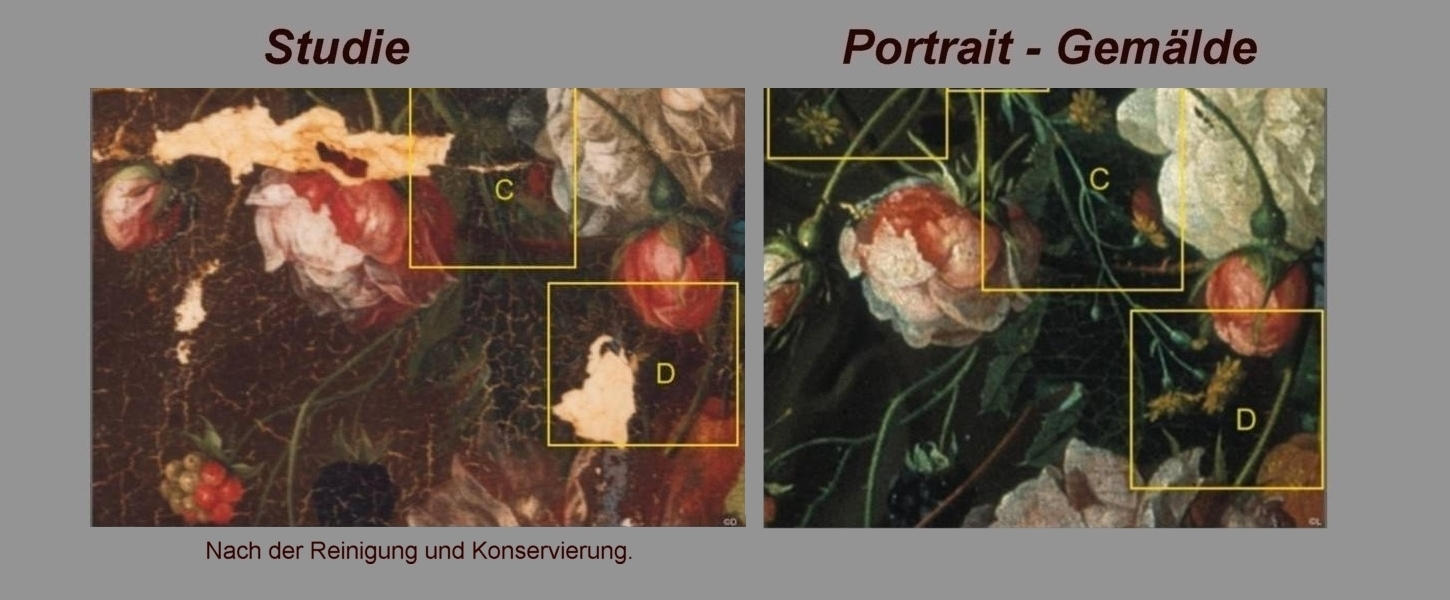Musée des Beaux Arts de Lyon, Makro Detailanalyse, Jan Davidsz. de Heem, Antwerpen, Auktion Lempertz Köln, Cöln, Evert J.M. Douwes Fine Art Amsterdam, Restoration Retuschen, painting restoration, retouching, Infrarot