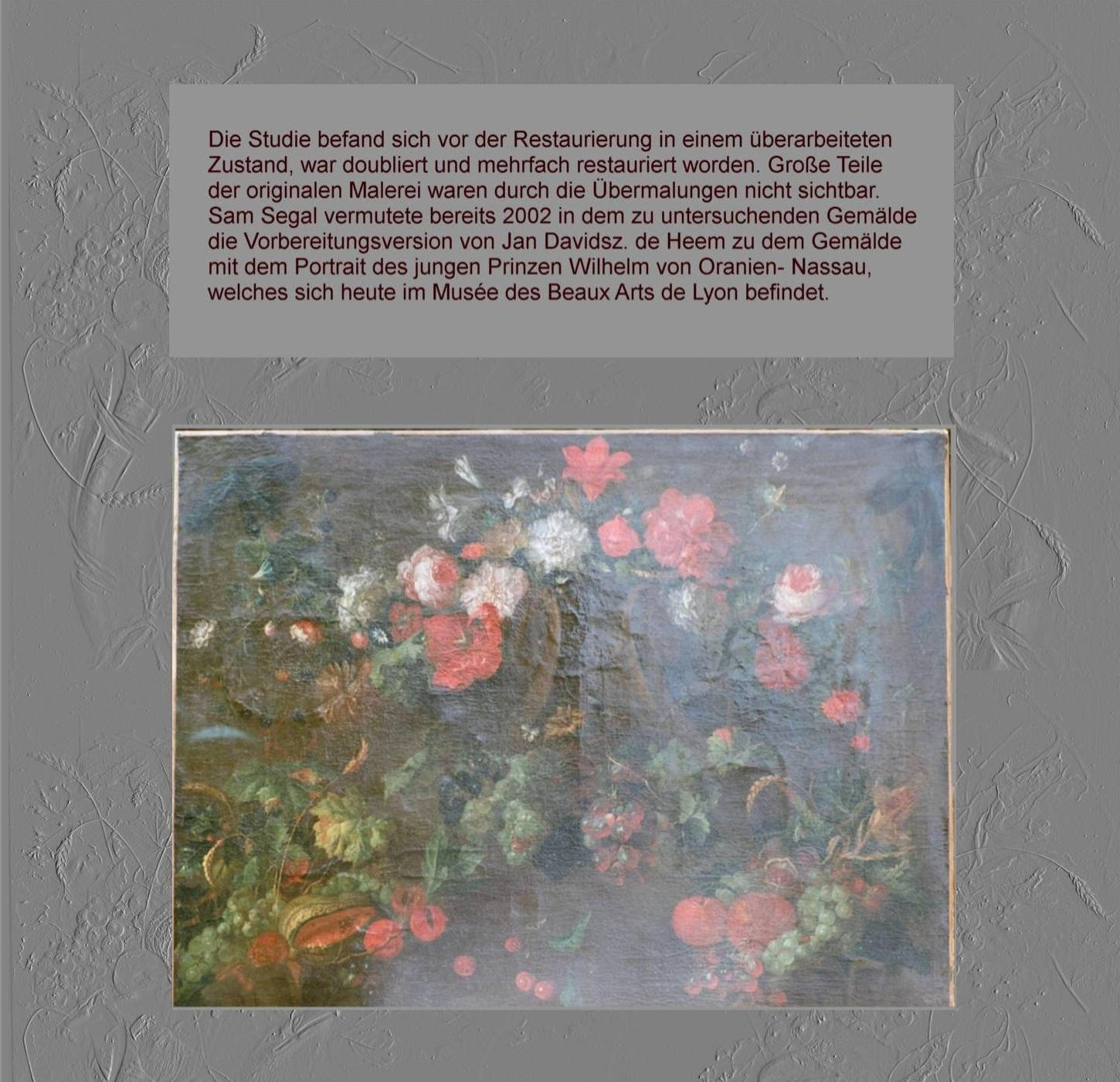 Musée des Beaux Arts de Lyon, Makro Detailanalyse, Jan Davidsz. de Heem, Antwerpen, Auktion Lempertz Köln, Cöln, Evert J.M. Douwes Fine Art Amsterdam, Restoration Retuschen, painting restoration, retouching, Infrarot