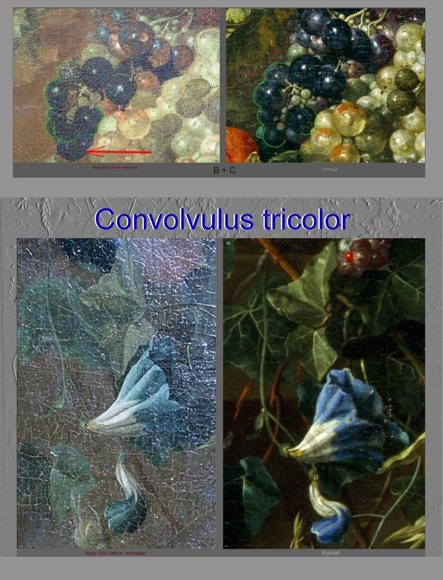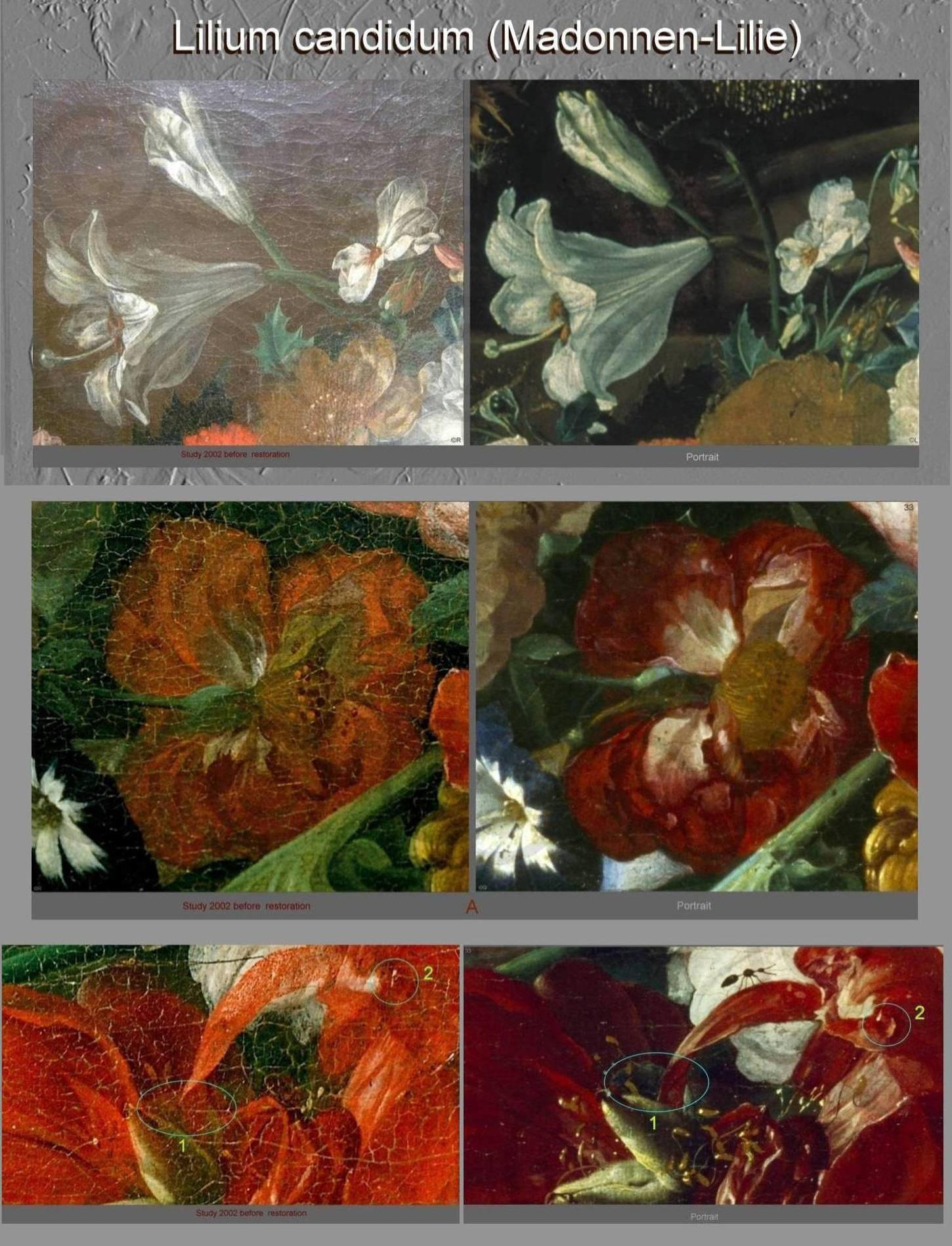 infrared investigation study (IRR-Osiris A1) Herzog Anton Ulrich-Museum, Braunschweig. responsible curators stated: there were no preparation sketches at all. Jan Davidsz. De Heem developed and changed his compositions directly on the canvas during the painting process. evidence Pentimenti Paeonia peregrina cornucopia foot anchoring point flowers garland. Orange-Nassau' (carried french army Louvre in 1795, Musée des Beaux Arts de Lyon appendant preliminary work portrait painting gift (Deal) William III. of Orange-Nassau, Governor of the Netherlands, King of England, Scotland and Ireland in 1672 (as William II. and "King Billy"). few secured works. The facsimile of a De Heem signature publication:Dr. Hugo Toman: Ueber die Malerfamilie de Heem,: Repetitorium für Kunstwissenschaft 1888