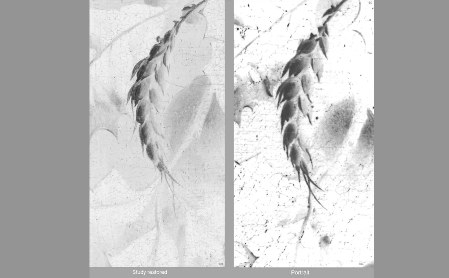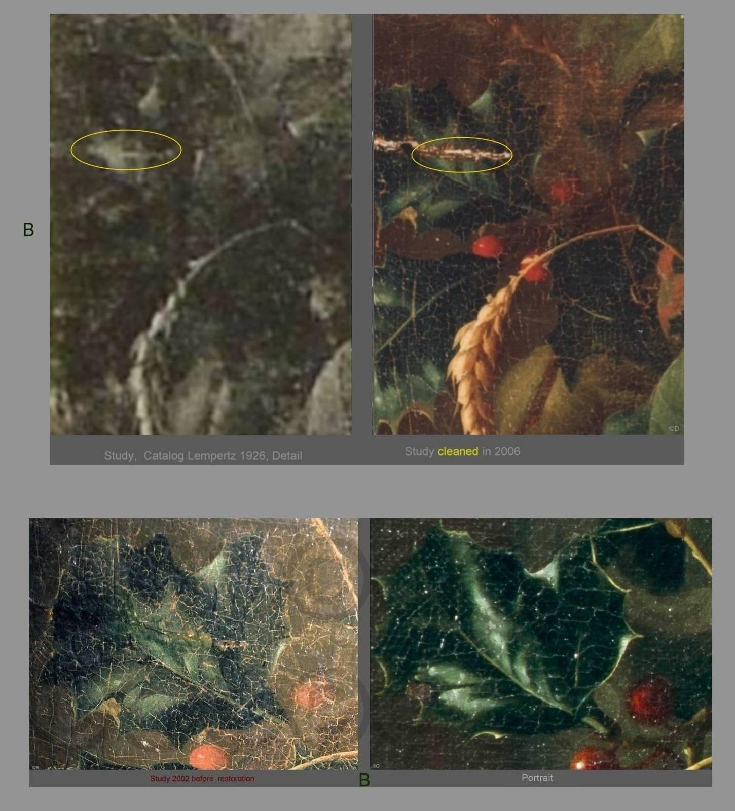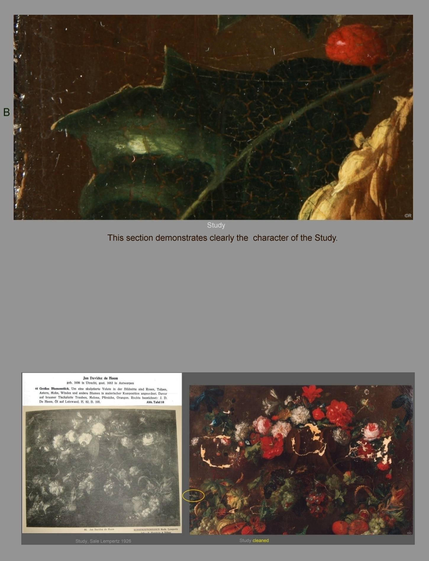 In the year 1926, the Study was auctioned off at Lempertz, Cologne as a genuine work by Jan Davidsz. De Heem. The catalog illustration from 1926 (Table 10) shows already a very poor state of perservation.