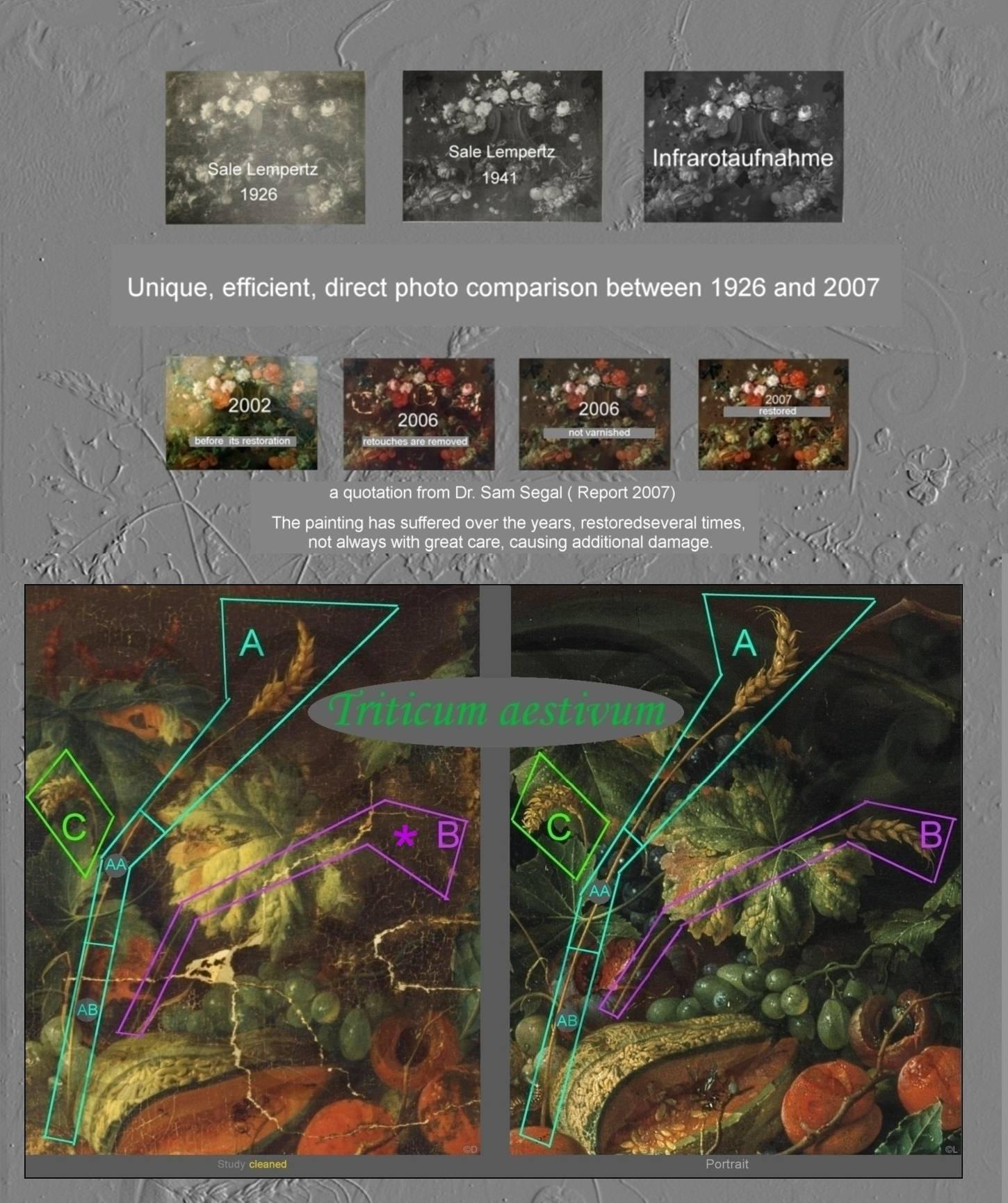 In the year 1926, the Study was auctioned off at Lempertz, Cologne as a genuinework by Jan Davidsz. De Heem. The catalog illustration from 1926 (Table 10) shows already a very poor state of perservation.